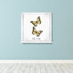 Add an elegant touch to your bedroom with a Gold Butterfly Floral Personalized Canvas Print. Print design features a pair of vibrant butterflies resting on a white floral vine against a light grey grunge background. Additional gift items available with this design as well.