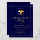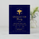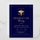 Gold caduceus Class Of 2025 navy blue formal graduation gold foil invitation. Honour the achievements of the Class of 2025 medical school graduate with these elegantly crafted real gold foil navy blue invitations. Adorned with a gold caduceus, a well-known emblem of the medical profession, these invitations clearly represent the graduate's area of expertise. The design is enhanced by delicate gold borders that meet at the corners, adding a refined touch. Utilize this invitation to formally gather family and friends to celebrate this important milestone, reflecting the graduate's dedication through this exquisite and fitting design.