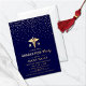 Gold caduceus and confetti Class Of 2026 navy blue formal Registered Nurse graduation gold foil invitation. Honor the achievements of the Class of 2026 nursing school graduate with these elegantly crafted real gold foil navy blue invitations. Adorned with a gold caduceus, a well-known emblem of the medical profession, these invitations clearly represent the graduate's area of expertise. The design is enhanced by delicate gold confetti t the upper part, adding a refined touch.