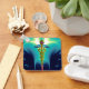 GOLD CADUCEUS MEDICAL SYMBOL Aqua Blue Turquoise Keychain