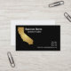 Gold California State Business Card. Metallic gold state of California. Black background or customize your card colour, paper, fonts and information.