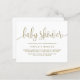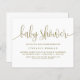 Invite family and friends with this customizable baby shower invitation. It features whimsical calligraphy and classic typography. Personalize by adding names, date, address and other details. This gold and white baby shower invitation is perfect for any baby shower season and theme. Other colours are available.