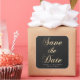 Hors arrière - plan noir avec calligraphie or script personnalisé "enregistrer la date" et vos propres monogrammes dans une police élégante. Cet autocollant se marie très bien avec nos cartes et nos enveloppes.