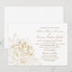 A luxurious landscape wedding invitation featuring a single large gold peony bloom on the left side with elegant calligraphy script names on a white background. The tonal gold palette creates a rich, sophisticated feel with every detail rendered in warm golden hues. All text is fully editable to capture your ceremony and reception information.