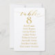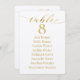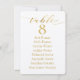Swashed font gold coloured calligraphy writing against a warm white felt paper for table chart cards.