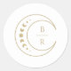 Seal your celestial theme with the "Gold Celestial Initials Wedding Classic Round Sticker." Against a clean white background, the golden crescent moon and stars, complemented by the stylishly simple customizable initials of the couple, become an enchanting emblem. Moon phases delicately incorporated add a layer of symbolism, making these stickers more than just decorative seals.