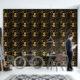 Gold Cello and Music on Black Back Peel and Stick Wallpaper