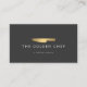 A gold chef's knife along with your name or business name creates an eye-catching and professional logo on this modern business card design. Perfect for catering companies, personal chefs, restaurants, kitchen supplies, etc. © 1201AM CREATIVE