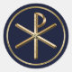 Gold Chi-Rho symbol on dark blue Classic Round Sticker