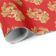 Customizable red wrapping paper with gold traditional Chinese paper-cut of a Rabbit (model n°1). Perfect for Chinese New Year of the Rabbit 2023 or birthday (people born in Rabbit Year).