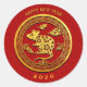 Golden Chinese paper-cut of a rat into a circle with auspicious clouds + Happy New Year in Chinese and English, Year of the Rat and large 2020. Design on round sticker with red background. You can easily change Background colour and year (font, colour, size and position) by clicking the customize button. Matching greeting card, invitation and more... Perfect for a modern and timeless Chinese New Year of the Rat 2020.