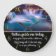 Gold Christian Faith a waterfall in a valley with blue sky and blue river water with the text saying.