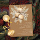 This elegant Christmas holiday bridal shower invitation features gorgeous watercolor gold Christmas ornaments with delicate pine branches and golden ribbons. The invitation is perfect for celebrating the upcoming bride during the holiday season. The front of the invitation features the watercolor gold Christmas ornaments and the bride's name, date, and time of the shower. The overall design is festive and sophisticated, and the invitation is sure to impress your guests.