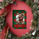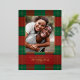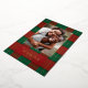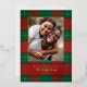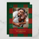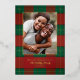 Classy, simple red and green Christmas plaid pattern with family photo and real gold foil accents and text. Personalize with your own name and greeting.