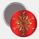Gold Christmas Star Snowflake on Red Christmas Magnet