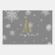 Add a touch of timeless charm to your holiday presents with these Gold Christmas Tree and Snowflakes Wrapping Paper Sheets. Designed with a festive Christmas tree accented by elegant flourishes, delicate white snowflakes, and gentle falling snow, this design captures the magic of the season. The grey background creates a sophisticated contrast, while the Merry Christmas message in elegant script ties the look together beautifully. Perfect for any winter theme, this versatile holiday gifting supply makes every present feel extra special.