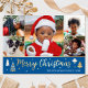 Spread Christmas cheer with a custom photo holiday card! This gold foil design includes six of your favourite photos — perfect for photos of kids, family, friends, and pets. Personalize the template with your family name, and a personal message. It features a photo collage and script typography, with festive tree and star motifs — a blend of traditional Christmas elements and modern style, with simple, clean lines and geometric shapes. Printed colours: blue, white and real foil elements in gold, silver or rose gold.