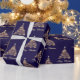 Gold Christmas Tree on Navy Background Wrapping Paper