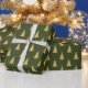 Gold Christmas Tree Pattern On Green Wrapping Paper