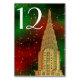 Golden Chrysler Building Skyline #2, Festive Christmas Red and Green Starry Sky Table Number Card