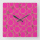 Gold Circles & Hot Pink Modern Trendy Chic Square Wall Clock