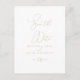 This gold classy chic minimalist save the date postcard is perfect for a rustic wedding. The simple and elegant design features classic and fancy script typography in gold.