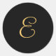 Gold-coloured initial E on black monogram round Classic Round Sticker