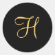 Gold-coloured initial H on black monogram round C Classic Round Sticker