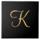 Gold-coloured initial K on black background Tile
