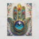 Gold Colourful Filigree Blue-Green Third Eye Hamsa Postcard