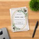 A frosted background. An oval faux gold frame decorated with cones, white berres and pine greenery. Personalize and add the details. Black text.