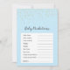 This Gold Confetti Blue Baby Shower baby predictions game is perfect for a classy, simple baby shower or sprinkle. The design features faux gold confetti on a blue background with elegant dark calligraphy.