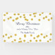 Gold confetti Christmas pattern with blue "Merry Christmas" text banner.