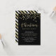 Gold Confetti Dîner de Noël Invitation par Yule4Yall. Envoyez ces élégantes invitations en noir et or et commencez votre dîner de Noël avec un message moderne. À l'avant, dans un script de style manuscrit élégant est le mot "Noël" découpé numériquement en feuille d'or. Au verso, il y a des rayures diagonales élégantes dans les mêmes couleurs dorées brun que le pois confetti à l'avant. Les polices serif en noir et blanc bloquées communiquent les détails de votre dîner de Noël avec une clarté maximale. Toutes les invitations Zazzle sont imprimées à plat - rien n'est apposé sur le papier. Merci .