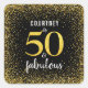 “50 and fabulous.” Be proud, rejoice and usher in 50 with style! This chic, playful, personalized, sparkly gold faux glitter confetti on a black background square sticker will help make her birthday a party to remember. Matching and coordinating invitations, envelopes, labels, paper napkins, paper plates, mugs and other items are also available. Makes a great addition to the festivities!