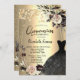 Gold Confetti Dots,Roses,Frame Black Dress Invitation