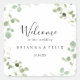 This gold confetti eucalyptus foliage wedding welcome square sticker is perfect for a rustic wedding. The design features watercolor eucalyptus green foliage with gold confetti.