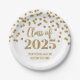 Customizable graduation party class of 2025 plates in glamourous gold confetti pattern and elegant hand lettered style text.