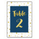 Cartes de numéro de table glamour et chic en bleu marine foncé et blanc avec confettis d'or et texte de style lettré à la main. Customisez ces cartes avec vos numéros de table pour un ajout spécial à vos tables mariages. Convient également pour les anniversaires et fêtes d'anniversaire.