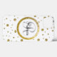 Add your custom name and initial to this pretty, light airy and feminine gold and silver confetti background print pattern design. Circular round shape with a faux gold leaf border and your single letter initial and name.