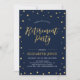 Celebrate your special day with this stylish modern Retirement party invitation template. This design features gold textured confetti and typography with a navy blue background.