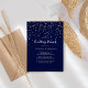 This gold confetti|navy wedding brunch gold foil invitation is perfect for a simple, elegant wedding. The design features real gold foil glitter confetti with raised texture, on a navy blue background with classy white calligraphy. QSD111