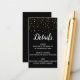 This Gold Confetti on Black Retirement Party detail insert card is perfect for an elegant retirement party or any celebration event. The stylish design features faux gold confetti with simple white calligraphy on a black background. It co-ordinates perfectly with the Gold Confetti on Black Retirement Party Invitation.