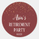 These Gold Confetti on Burgundy retirement party envelope seals are perfect for an elegant retirement party. The design features faux gold confetti on a warm burgundy background with classy white calligraphy. Personalize the stickers with the name of the retiree and the event date.