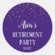 These Gold Confetti on Purple retirement party envelope seals are perfect for an elegant retirement party or reception. The design features faux gold confetti on a purple background with classy white calligraphy. Personalize the stickers with the name of the retiree.