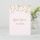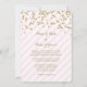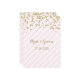 Invitations de mariage personnalisées dans élégantes et jolies rayures pastel rose et blanc, confettis d'or et lettrage de style manuscrit. Customisez ces invitations avec vos coordonnées de mariage. Disponible en produits assortis pour tous vos besoins mariages.