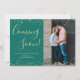 Gold Confetti on Dark Green Photo Pregnancy Announcement Cards. Expecting parents! Modern hand lettered typography "coming soon" script card to share your happy news with friends and family. Features above and the bottom gold confetti frame on dark emerald green colour background. You can personalize the design by replacing the simple texts and vertical photo. If you need help or matching items, please contact to me! #3351