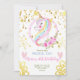 Gold Confetti Pink Unicorn face Birthday Invitation
