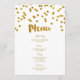 Wedding dinner menu in glamourous gold glitter confetti pattern. (please note glitter is print only)