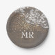 Gold Confetti Wood Lace Wedding Monogram Paper Plate